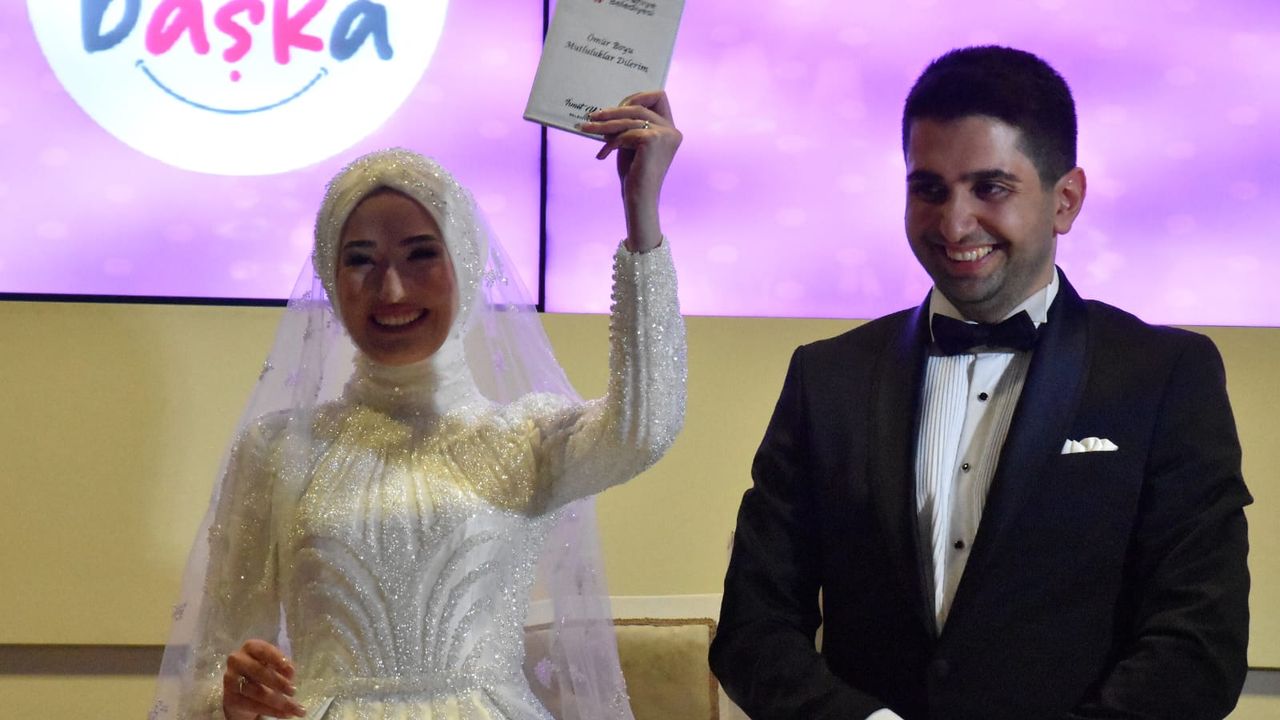 Senanur Çetinkaya ve Canberk Şenlik, Ümraniye Belediyesi Nikah Sarayı’nda düzenlenen nikah töreniyle dünya evine girdi.