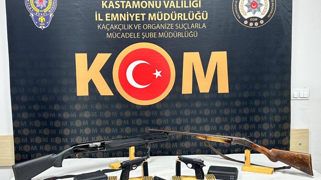 Kastamonu Emniyet Müdürlüğü Kaçakçılık ve Organize Suçlarla Mücadele Şube Müdürlüğü ekiplerince silah kaçakçılığının önlenmesi çalışmaları kapsamında İl Merkezi ve Taşköprü İlçesinde 9 adrese eş zamanlı operasyon düzenlendi. Yapılan aramalarda 2 adet ruhsatsız tabanca, 2 adet ruhsatsız av tüfeği ile 103 adet fişek ele geçirildi.