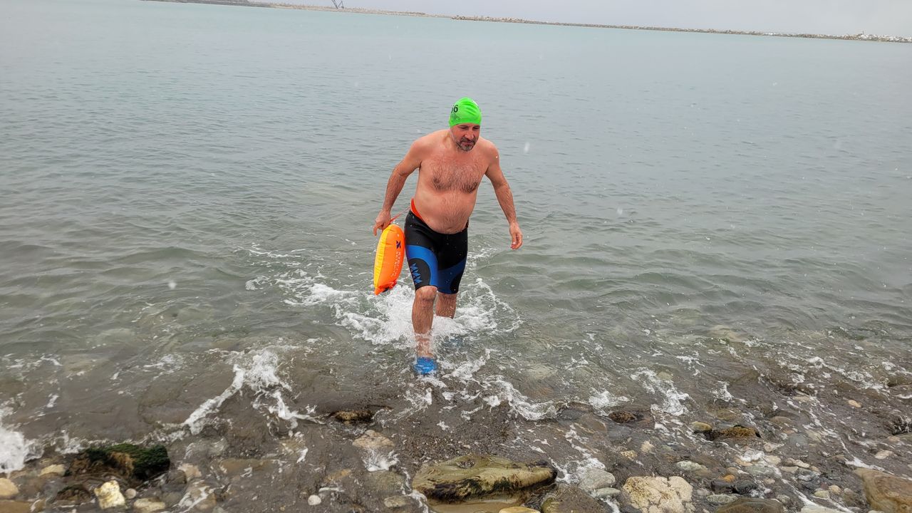 İnebolu ilçesinde yaşayan 54 yaşındaki Saim Gürel, kar yağışı altında denize girerek yüzdü. Hava sıcaklığının 1, deniz suyu sıcaklığının ise 6 derece olduğu havaya aldırış etmeyen Gürel, kalın kıyafetler giymiş arkadaşlarının gözü önünde önce karların üzerine uzandı, ardından denize girerek kulaç attı.