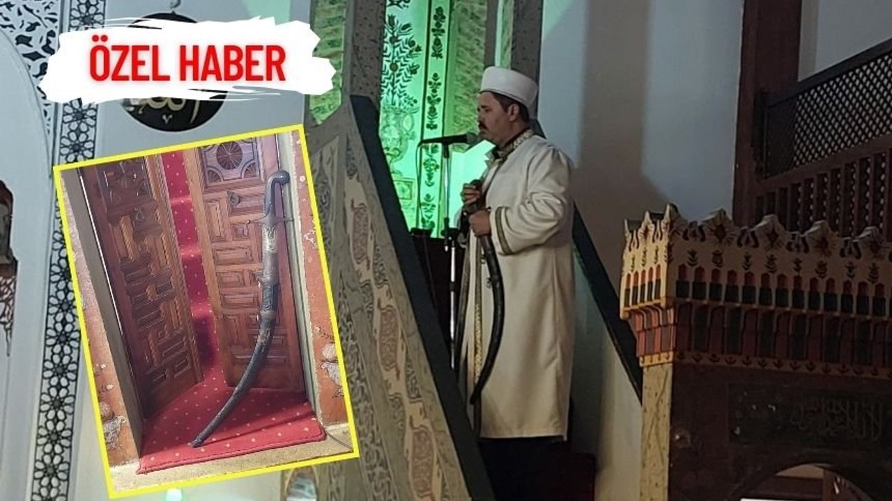 “Bizim elimizdeki kılıcın orijinal Atabey Gazi Hüsamettin Çoban Bey'e mi ait kılıç olduğunu da soruyor buraya gelen ziyaretçiler. Bu kılıç o kılıç değil. Hüsamettin Çoban Bey'in kılıcı bir müddet burada muhafaza edilmiş. O zamanki görevliler tarafından o kılıç kullanılmış hutbe okunurken. Daha sonra o kılıcın buradan kaybolduğu çalındığı tarihi eser kaçakçıları tarafından söyleniyor ve şu anda da İngiltere British Müzesi'nde olduğu söyleniyor. Fakat bu konuyla ilgili resmi bir kaynak yok ama öyle söyleniyor. Bizim bugün kullandığımız kılıç daha sonra buraya getirilerek burada kullanılan bir kılıç yani Hüsamettin Çoban Bey'in kullanmış olduğu kılıç değil. Yapısıyla da aynı değil. Bize anlatılan, kılıcın aslında üzerinde Fetih suresinin tamamının yazılı olduğu söyleniyor. Bu normal bir asker kılıcı. Yani kılıçlarda eskiden şey varmış mesela komutanın kullandığı kılıcın özellikleri olurmuş bu kabzasındaki başında. İşte kurtbaşlı kılıçlar var. Padişah'ın kılıcı farklı. Komutanın rütbesine göre kılıcında illaki bir emare işaret olurmuş. Bunu normal bir er, askerin kullandığı kılıç olduğunu söylüyorlar. Ecdadımızdan bize emanet. Biz elimizden geldiği kadar korumaya ve gelen ziyaretçilere anlatmaya, tanıtmaya çalışıyoruz.”