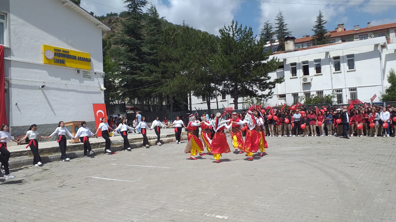 - Mecitözü Mecitözü Spor Salonu'nda düzenlenen kutlama etkinliğinde öğrenciler halk oyunları ve sportif gösteriler sundu. Etkinlikte ayrıca öğrenciler "Bağımlılığa hayır" yazılı pankart açarak, bağımlılıkla mücadeleye dikkat çekti. Töreni Mecitözü Kaymakamı Bayram Köse, Mecitözü Belediye Başkanı Veli Aylar ve vatandaşlar izledi. - Dodurga Dodurga İlçe Gençlik ve Spor Müdürü Aslı Bayram, Hükümet Konağı önündeki Atatürk Büstüne çelenk sundu. Ardından Dodurga Güreş Alanı'nda düzenlenen kutlama töreninde öğrenciler bayrak gösterisi, halk oyunları, zeybek, jimnastik gösterileri sundu. Dodurga Kaymakamı Hakan Vatansever, törende, bursluluk sınavında tüm soruları doğru cevaplayarak 500 tam puan alan ve Türkiye birincisi olan Dodurga İmam Hatip Ortaokulu öğrencisi Ali Salih Özgen'e bisiklet hediye etti. Törene Dodurga Belediye Başkan Vekili Mustafa Şahin, İlçe Jandarma Komutanı Astsubay Başçavuş Ercan Örken, İlçe Emniyet Amiri Özkan Dağ, İlçe Milli Eğitim Müdürü İsmail Özüdoğru da katıldı.