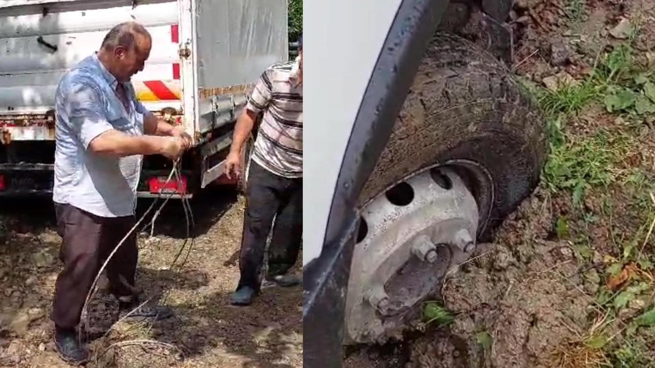 Kastamonu’nun Çatalzeytin ilçesinde düzeltilmeyen köy yolunda bir kamyonet çamura saplandı. Köy yollarında zor anlar yaşayan vatandaşlar duruma isyan etti.
