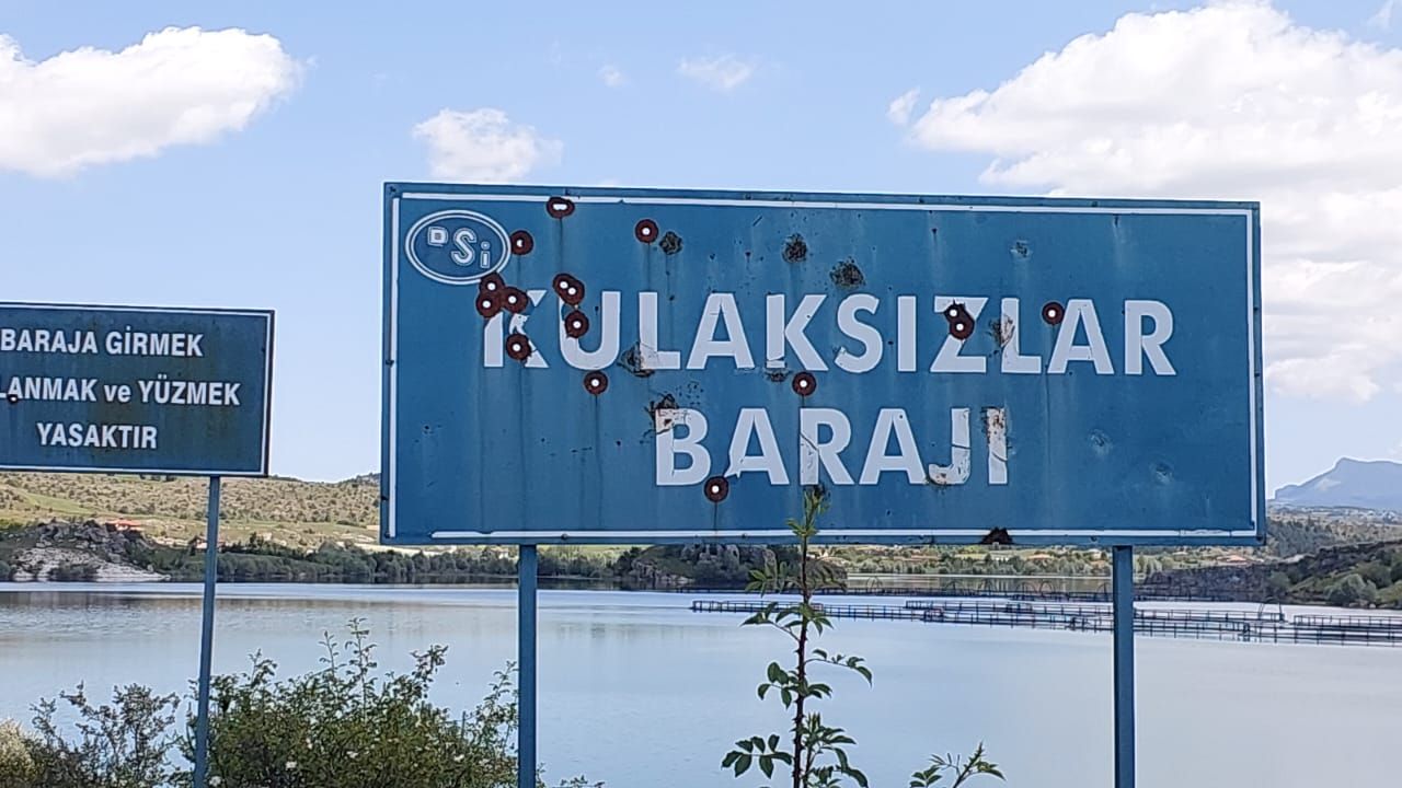 Kulaksızlar Barajı’ndaki uyarı levhaları başta olmak üzere Karayolları ve ormanlardaki trafik işaret ve yön bulma tabelaları, kimliği belirsiz kişi veya kişilerce hedef tahtası yapılmaya devam ediliyor. Magandaların ateş ettiği ve tahrip ettiği işaret, yön ve uyarıcı tabelalar kullanılamaz hale getirildi.