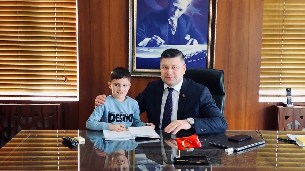 Kaymakamlık görevini yakından tanımak isteyen Yiğitcan, makamda Kaymakam Uçar’a sorularını yönelterek ödevi için notlar aldı. Daha önce gerçekleştirilen okul ziyaretinde Kaymakam Uçar’ı gördüğünü ve o günden bu yana kaymakamlık mesleğine ilgi duyduğunu anlatan Yiğitcan, görüşme sonunda “Ben de kaymakam olmak istiyorum” şeklinde konuştu.