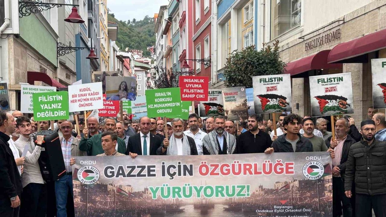 Ordu’da, sivil toplum kuruluşu üyeleri ve çok sayıda vatandaş, pankartlar ve sloganlar eşliğinde Gazze için yürüyüş düzenledi.