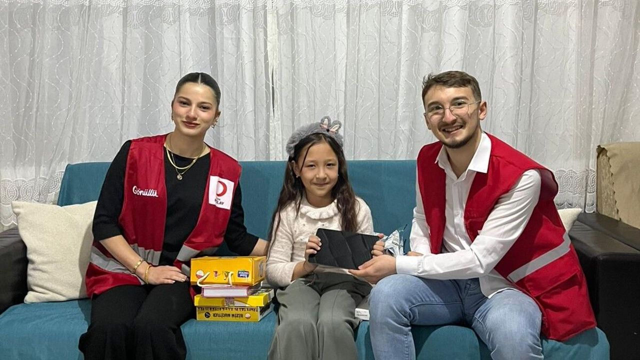 Özbekistanlı Aygül’ün, Kızılay’dan talep ettiği tablet ve okuma kitabı seti, hayırsever gönüllülerin katkısıyla temin edilerek kendisine teslim edildi.
