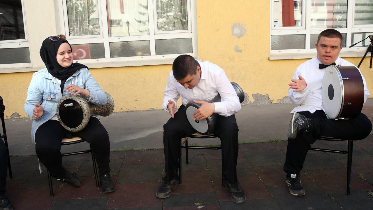 Kastamonu İhsan Ozanoğlu Özel Eğitim Meslek Okulu ile Kastamonu Halk Eğitim Merkezi işbirliğinde açılan kursa katılan otizmli, down sendromlu ve hafif zihinsel engelli öğrenciler def, erbane, bendir, davul ve darbuka çalmayı öğreniyor.