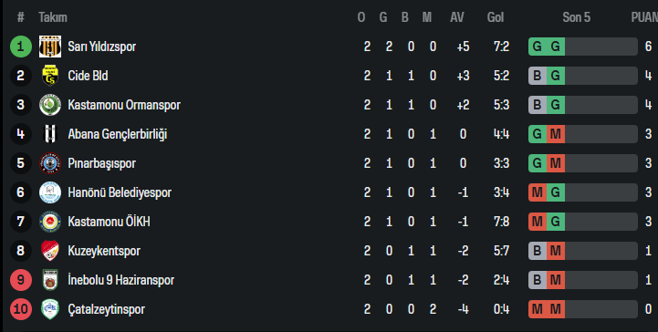 Kastamonu Kuzeykent Hasan Doğan Tesisleri’nde oynanan karşılaşmada genç kadrosuyla etkili bir oyun sergileyen Sarıyıldız’ın golleri, 2008 doğumlu iki isim Yusuf Kaynak ve Arda Subutay’dan geldi. Sarı-kırmızılı ekip, dinamik oyunu ve gençlerinin performansıyla haftanın dikkat çeken takımı oldu.