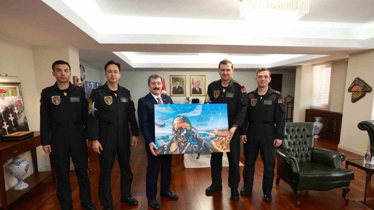Milli Mücadele’nin ilk adım şehri Samsun’da gerçekleştirilecek olan gösteri uçuşu öncesinde, Türk Hava Kuvvetleri’nin gurur kaynağı pilotları Samsun Valiliği’ni ziyaret etti. Gökyüzünün cesur kartalları, Vali Orhan Tavlı’ya hem SOLOTÜRK hem de Türk Yıldızları logolu tabloları imzalayarak takdim etti.