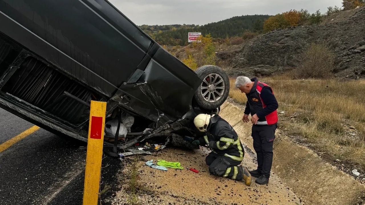 Edinilen bilgiye göre, sürücüsünün direksiyon hâkimiyetini kaybettiği hafif ticari araç yoldan çıkarak devrildi.