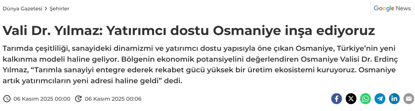 Dünya Gazetesi’nde Güneş Doğdu Soylu’nun “Vali Dr. Yılmaz: Yatırımcı dostu Osmaniye inşa ediyoruz” başlığı ile yayımlanan (https://www.dunya.com/sehirler/vali-dr-yilmaz-yatirimci-dostu-osmaniye-insa-ediyoruz-haberi-801743) haberini metinde “Osmaniye” geçen yerlere “Kastamonu” yazarak okudum…