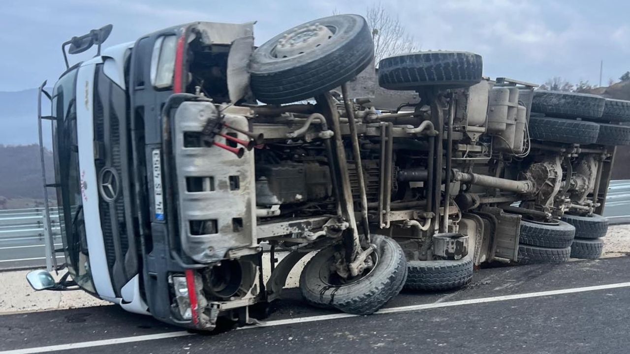 Edinilen bilgilere göre, bir beton mikseri henüz bilinmeyen bir nedenle kontrolden çıkarak devrildi.