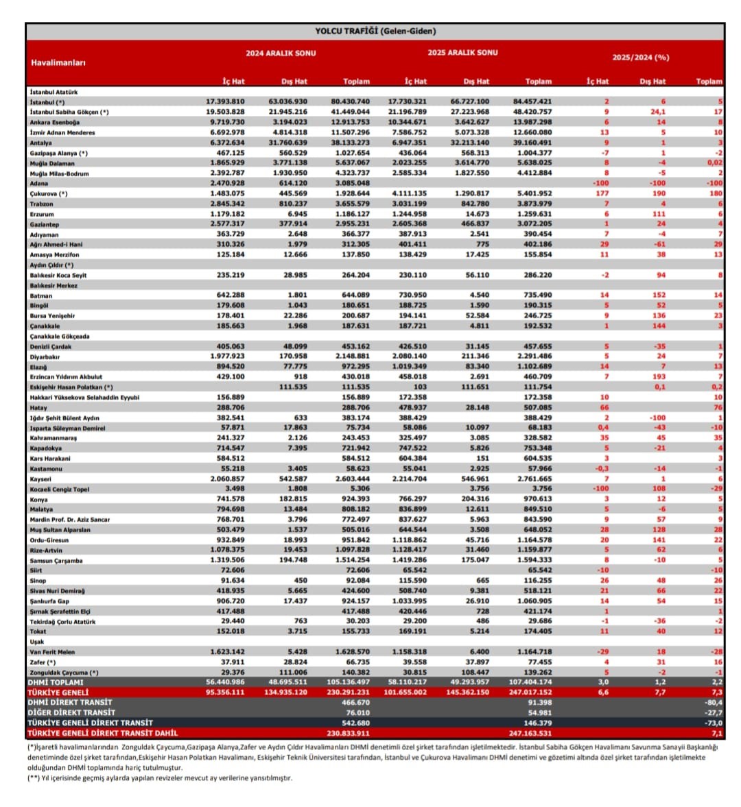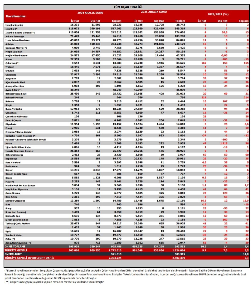 2025’te 2024’e göre yüzde 75’lik uçuş trafiği artışına rağmen yolcu sayısı 2024’ün yüzde 0.3 altında, 2024’te kar mı var, 2025’te zarar mı?