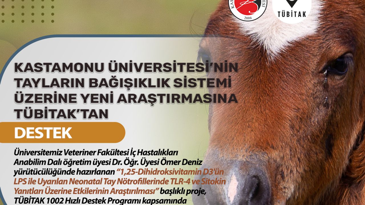 Arş. Gör. Serkan Bozacı ve Doç. Dr. Kenan Çağrı Tümer araştırmacı olarak görev aldığı projede, doğuştan gelen bağışıklık yanıtlarının düzenlenmesinde D vitamininin rolü incelenecek. Çalışmayla, yeni doğan tayların bağışıklık sistemine ilişkin temel mekanizmaların anlaşılmasına katkı sunmayı hedefliyor.