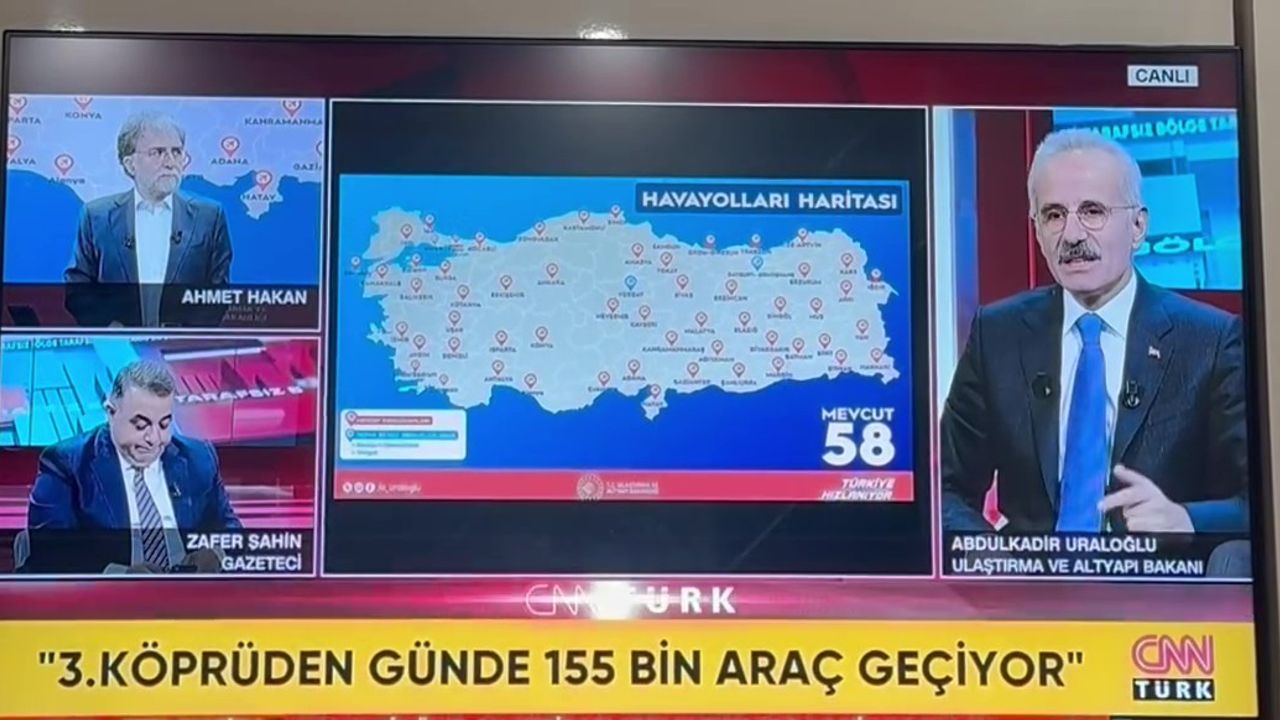 CNN Türk’te Ahmet Hakan’ın programına konuk olan Bakan Uraloğlu’na, gazeteci Zafer Şahin tarafından 26. Dönem Kastamonu Milletvekili Murat Demir’in ilettiği sahil yolu sorusu yöneltildi.