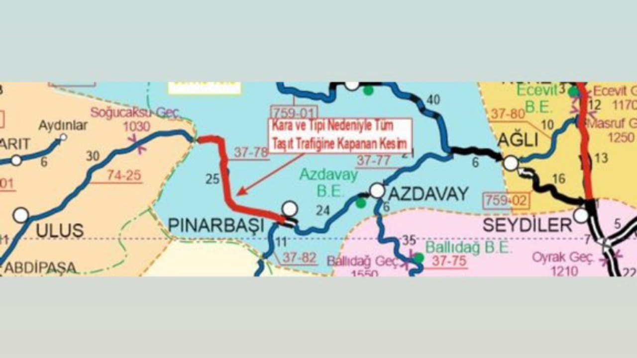 “Karayolları 15. Bölge Müdürlüğü’nden alınan bilgiye göre, yoğun kar yağışı sebebiyle 37-78 KK Nolu Ulus (Şirinler)-Bartın-Kastamonu il sınırı-Pınarbaşı il yolunun 0-25 kilometreleri arası, 28.12.2025 tarihi saat 21.00 itibarıyla tüm taşıt trafiğine kapatılmıştır.”