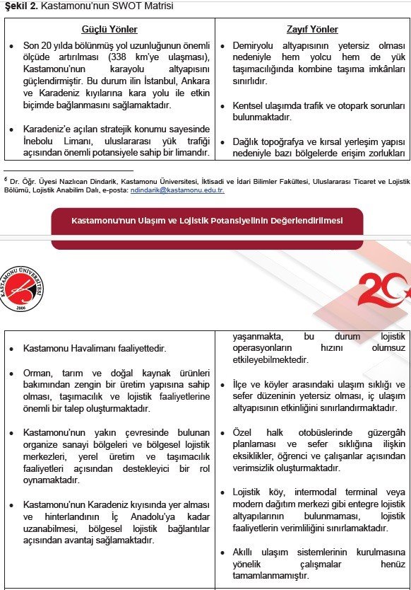 (“Kastamonu’nun Ulaşım ve Lojistik Potansiyelinin Değerlendirilmesi” dosyası “sekiz” başlıktan mürekkep…