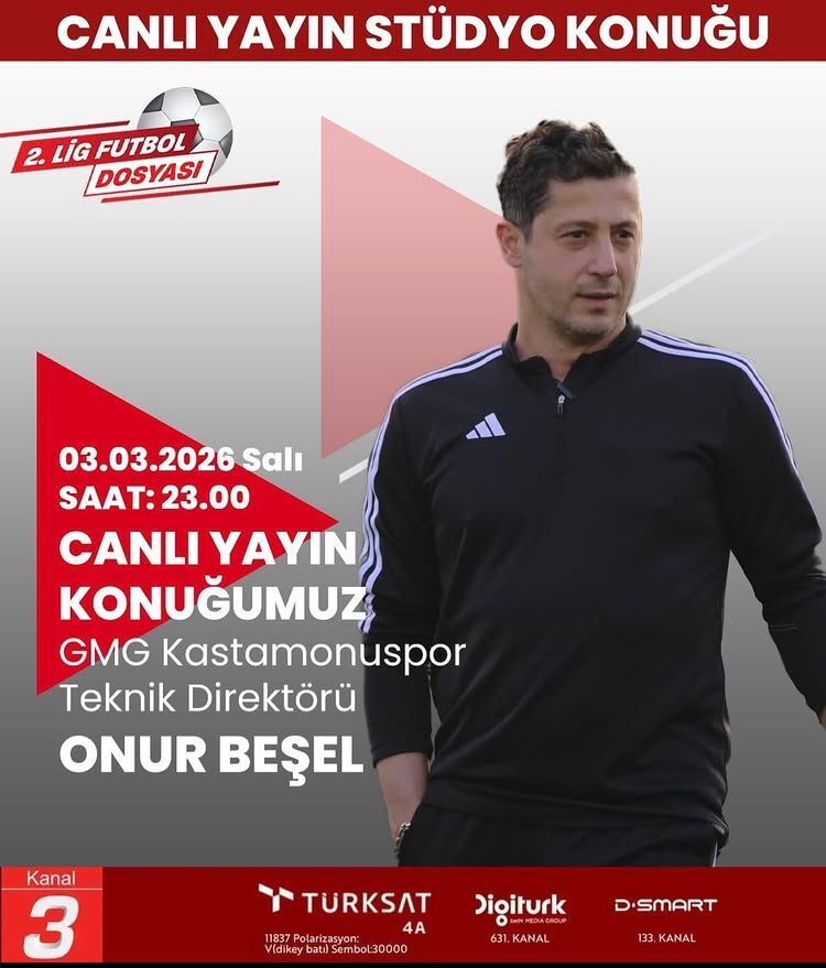 Yarınki yayında 2. Lig Beyaz Grup’ta mücadele eden GMG Kastamonuspor’un teknik stratejileri ve gelecek planları masaya yatırılacak. Program Kanal3 ekranlarında saat 23.00’te başlayacak.