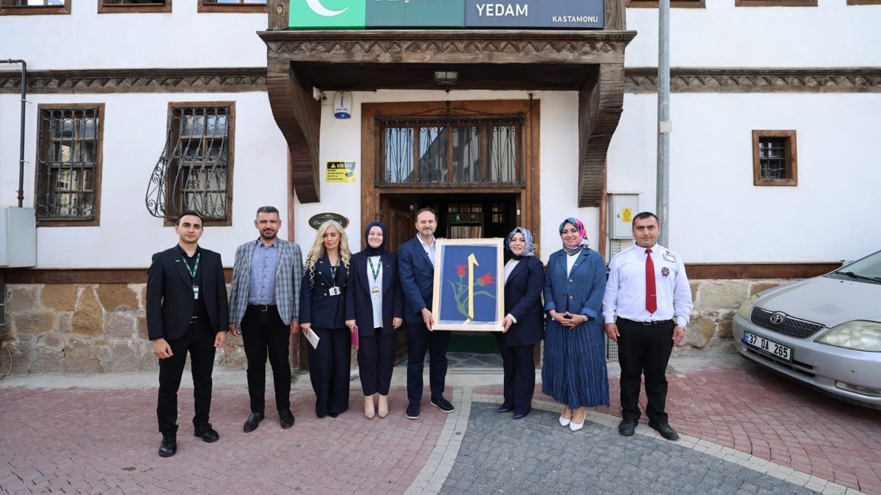 Yeşilay Genel Başkanı Mehmet Dinç’e Kastamonu Yeşilay Danışmanlık Merkezi ziyareti sonrasında günün anısına Yeşilay Kastamonu Şube Başkanı Serpil Durgut tarafından hediye verildi.