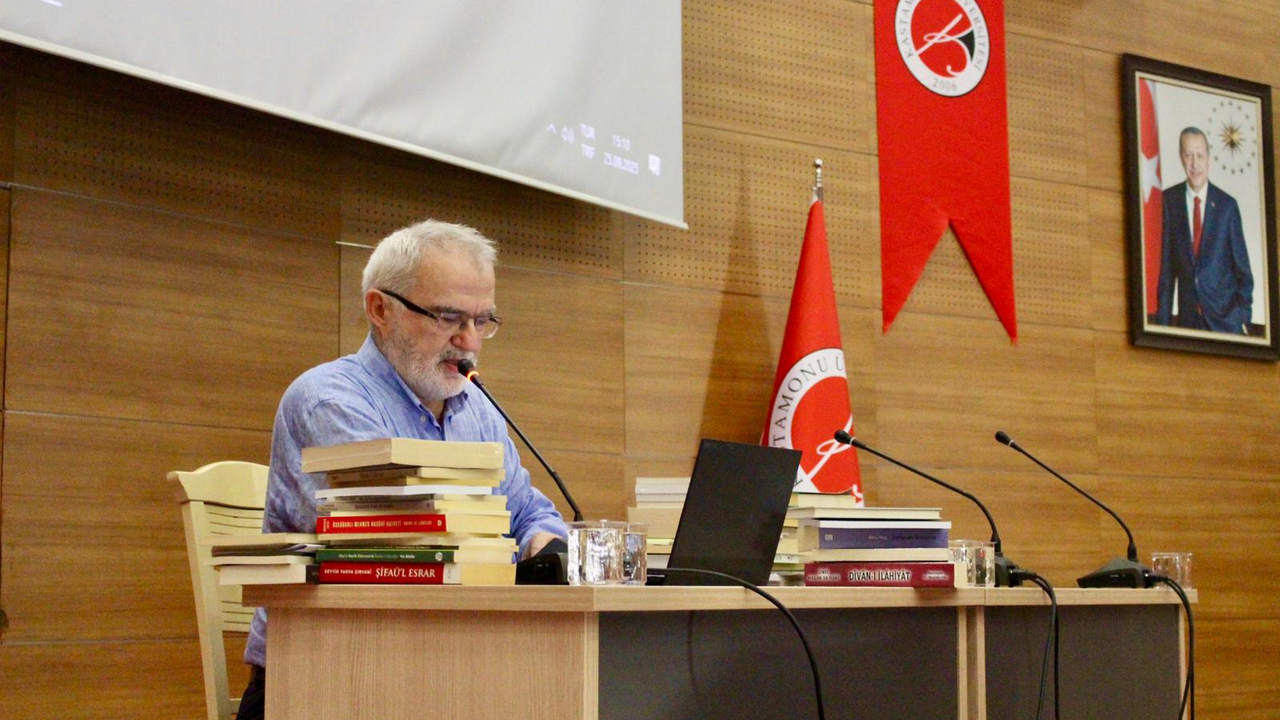 Söyleşide konuşan Dr. Öğr. Üyesi Mustafa Tatcı ise Yunus Emre’nin Türk-İslam kültüründeki önemine ve Kastamonu ile olan bağlarına dikkat çekti. Tatcı, Yunus Emre’nin Anadolu irfan geleneğini temsil eden önemli bir isim olduğunu vurgulayarak, “Yunus Emre, yalnızca bir şair değil; insanı, yaratılışı ve aşkı merkeze alan bir gönül eridir. Kastamonu, irfan havzalarının en önemli duraklarından biridir. Buradaki manevi miras, Yunus’un dilinde yeniden hayat bulmuştur. Yunus’u anlamak, aslında Anadolu’nun ruhunu anlamaktır.” ifadelerini kullandı.