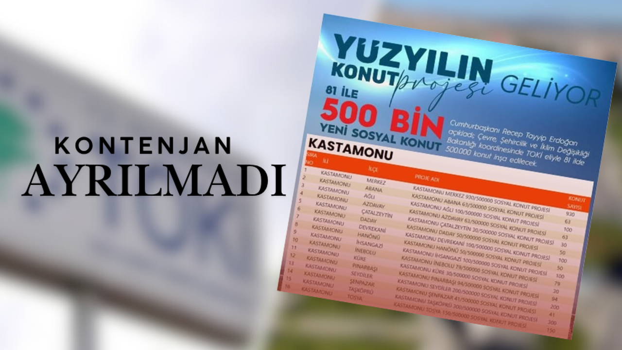 Proje kapsamında Kastamonu genelinde toplam 2.380 sosyal konut inşa edileceği açıklanırken, Araç İlçesi’ne herhangi bir konut kontenjanı ayrılmadığı öğrenildi.